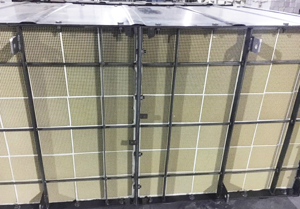 由于活性炭法对NOx和颗粒物的脱除不能满足超低排放要求,现在很多企业参考湿法和半干法脱硫除尘+SCR脱硝工艺,选择在活性炭装置后增设SCR脱硝,脱硝温度可设计在150-200℃,但烧结烟气经活性炭除尘,飞灰浓度只能控制在15-20mg/Nm³左右。活性炭法属于全干法,对碱金属的捕集效率不如湿法和半干法,活性炭除尘后飞灰中碱金属含量高达30-50wt%。同时,烟气经过活性炭装置时,会将碳粉和硫酸氢铵/硫酸铵带入到后续脱硝装置中。在碱金属、碳粉、硫酸氢铵/硫酸铵的协同作用下,即使烟尘浓度低至15-20mg/Nm3,经过长期积累,催化剂发生碱金属中毒失活和堵塞的风险依然很高,这就对催化剂的设计提出了更高要求,如果搭配适合的催化剂,这种工艺也能稳定运行。