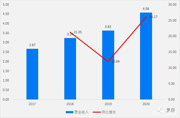 2017-2020年,营业收入由2.67亿元增长至4.58亿元,复合增长率19.71%,20年实现营收同比增长26.17%;归母净利润由0.36亿元增长至0.62亿元,复合增长率19.87%,20年实现归母净利润同比增长5.08%;扣非归母净利润由0.33亿元增长至0.50亿元,复合增长率14.86%,20年实现扣非归母净利润同比下降3.85%;经营活动现金流由-0.33亿元增长至0.74亿元,20年实现经营活动现金流同比下降30.84%。
